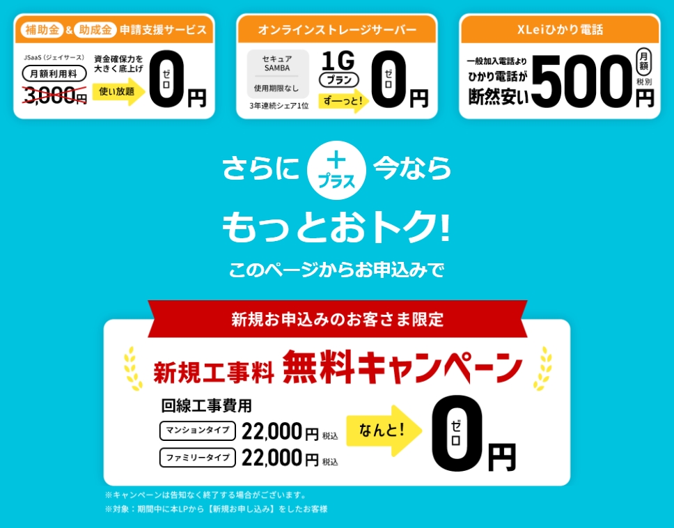 今の光回線に不満がある、経費を見直したい、IT化を進めたいとお考えなら、この機会に「XLeiひかり」への切り替えを検討してみてはいかがでしょうか?